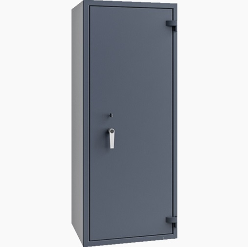 Standardowo sejf zamykany jest zamkiem kluczowym klasy A, klucze L=95 mm szt. 2, opcja zamiany na zamek elektroniczny klasy B (1 milion możliwości zmiany kodu) jest w wyposażeniu dodatkowym.