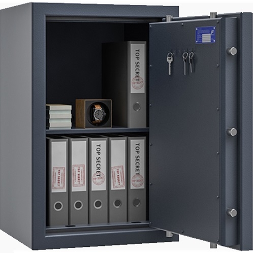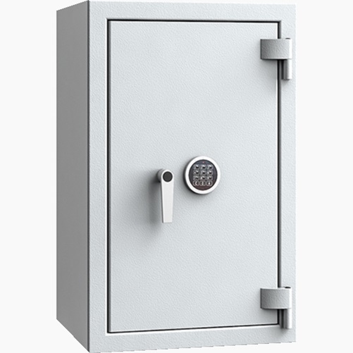 Zamknięcie sejfu realizowane jest zamkiem kluczowym klasa B, klucze L= 135 mm, szt. 2. Zamek elektroniczny w opcji wyposażenia dodatkowego.