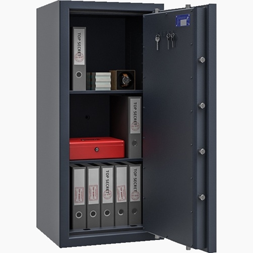 Standardowo zamknięcie sejfu realizowane jest zamkiem kluczowym klasa B, klucze L= 135 mm, szt. 2. Zamek elektroniczny w opcji wyposażenia dodatkowego.