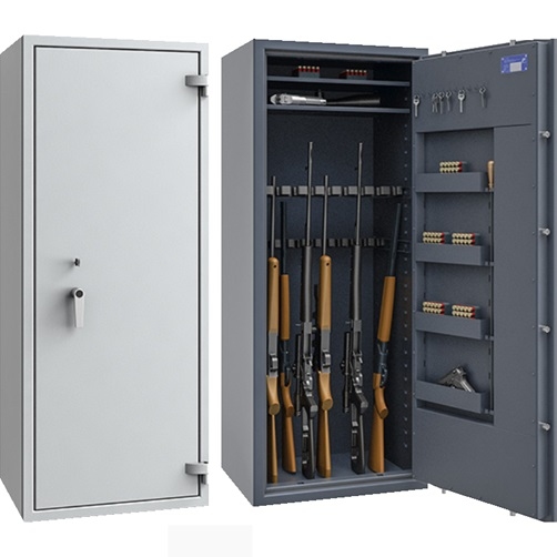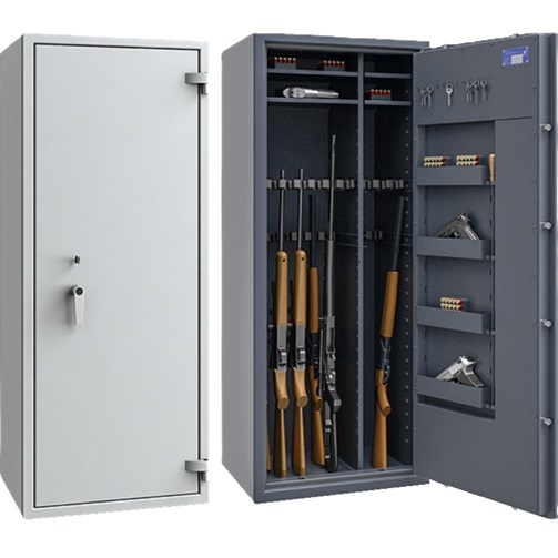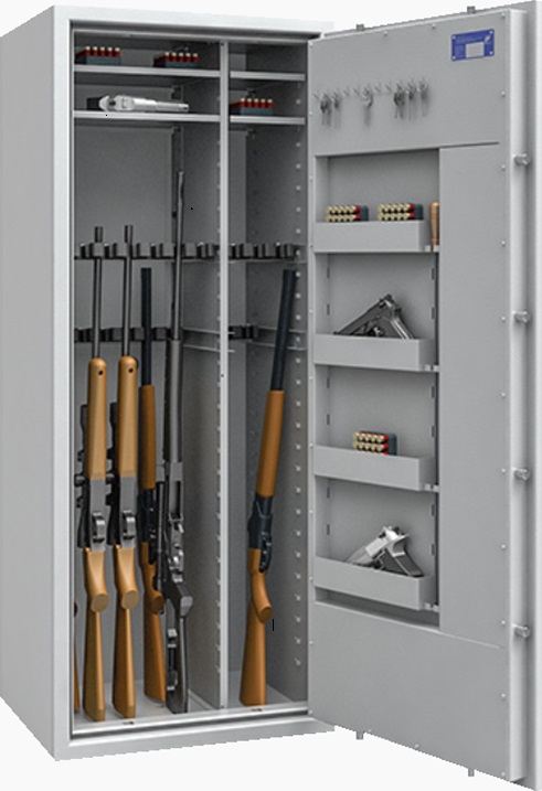 Prezentowane szafy na broń długą klasy 1 to doskonałe urządzenia zabezpieczające wartości oraz każdy rodzaj broni palnej. Spełniają wymagania antywłamaniowe w klasie I zgodnie z normą PN-EN 1143-1, służą do przechowywania pieniędzy, biżuterii, dokumentów, broni, amunicji oraz innych wartościowych przedmiotów. Warto podkreślić, że oferowane tutaj sejfy spełniają wymagania Rozporządzenia MSWiA z dnia 26 sierpnia 2014 r. w sprawie przechowywania, noszenia oraz ewidencjonowania broni i amunicji. Idealnym tego przykładem jest chociażby model sejf na broń St. Gallen WF 56477.00 (na 3 sztuk broni) cieszący się bardzo dużą popularnością wśród naszych klientów.