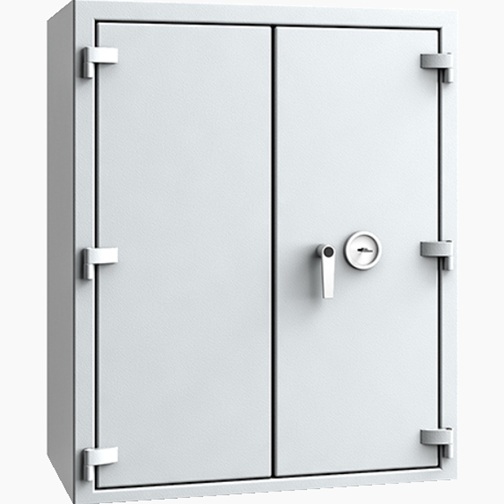 - Korpus o grubości 65,5 mm wykonany z dwóch płaszczy blachy stalowej, drzwi kilkupłaszczowe o grubości 94 mm wypełnienie pomiędzy wewnętrznym i zewnętrznym płaszczem korpusu oraz drzwi realizowane ognioodporną izolacją.