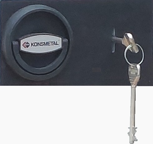 - Drzwi blokowane są układem rygli ruchomych na trzech krawędziach (krawędź pionowa od strony zamków zabezpieczona jest przez 4 rygle, krawędź górna i dolna po 1 ryglu) krawędź od strony zawiasów ryglem stałym na całej wysokości. Drzwi szaf metalowych wykonane są z dwóch warstw blachy stalowej, zawieszone na zawiasach wewnętrznych, kąt otwarcia drzwi 120o.